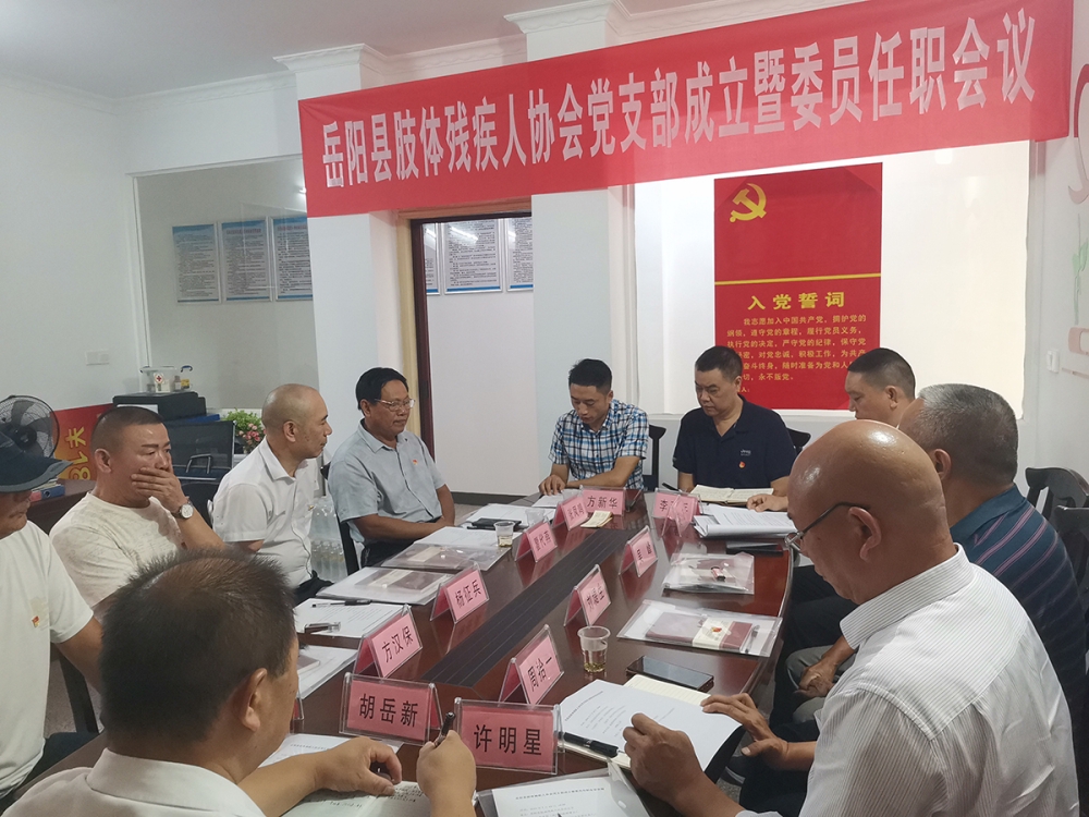7月29日,岳阳县肢体残疾人协会党支部成立大会召开。县残联副理事长李西兵、县社会组织综合党委副书记方新华出席并讲话。