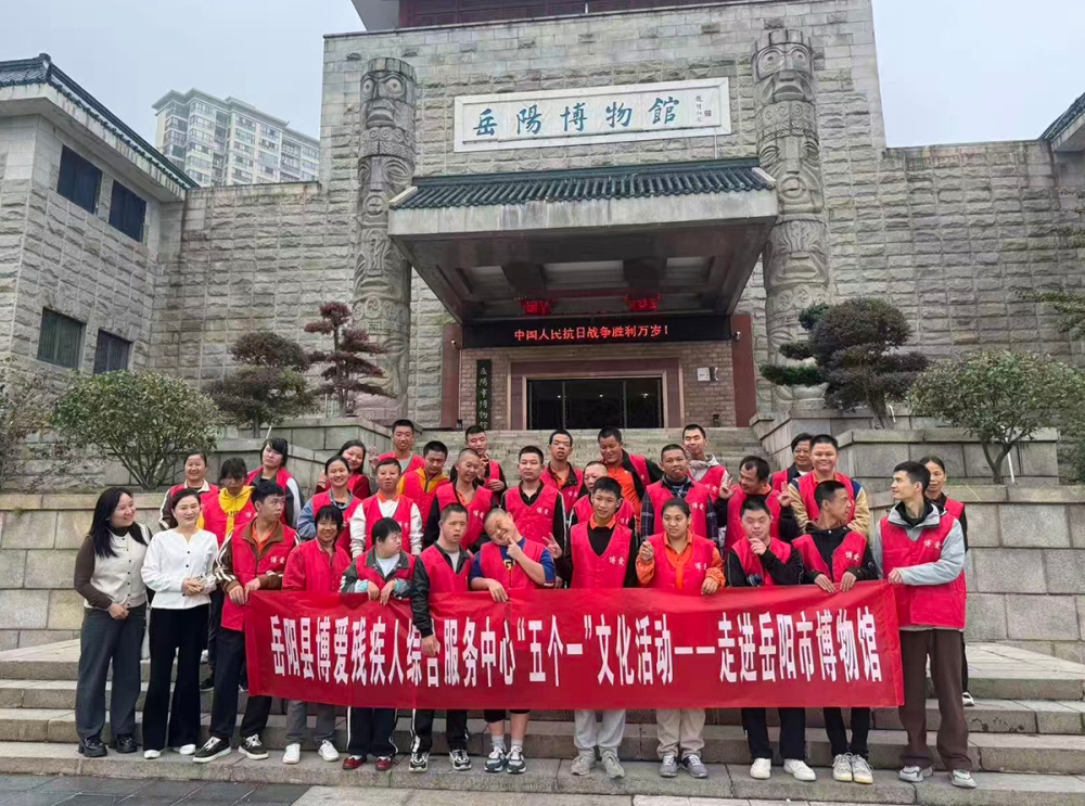 10月15日,岳阳县智亲协会以及博爱残疾人综合服务中心工作人员携手,陪伴托养服务对象前往岳阳市博物馆,开启了期盼已久的“五个一”文化探索之旅。“五个一”即读一本好书、看一次展览、游一处景点、参加一次文化活动、交一个朋友,对托养对象而言,每一次出行,都是感知世界、融入社会的宝贵机会。一路上,车厢中弥漫着欢声笑语,温暖的关怀与期待的笑容交织在一起。