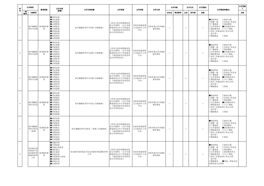 君山区食品药品监管领域基层政务公开标准目录.xlsx