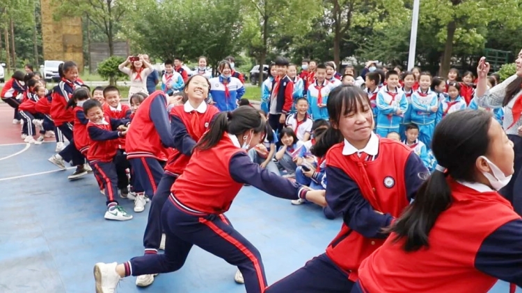“蓝叔叔,我爱你!”此次主题活动在孩子们的齐声表白中拉开了序幕。听到这样的表白,平时严肃的消防员们都会心微笑了。随后,孩子们庄重地为勇敢、可爱的消防员“蓝叔叔”系上了红领巾并行少先队礼,表达敬意。在岳阳楼区消防救援大队叔叔的带领下,留守儿童参观了消防车辆器材装备、消防员宿舍、荣誉室等。在消防器材车库,孩子们津津有味聆听消防叔叔介绍了各类消防器材装备的名称、性能和使用方法。在一排排消防车前,孩子们明白了各类消防车性能和用途。在消防员宿舍,消防叔叔展示被子叠成“豆腐块”的绝技,让孩子们惊叹不已,不少孩子学以致用,饶有兴趣参与动手体验。在消防叔叔指导下,“豆腐块”被子叠得有模有样,有的孩子还高兴地举起“豆腐块”,展示自己的学习成果。在岳阳楼区消防救援大队操场,师生们与消防队员开展拔河比赛,现场满堂喝彩声,充满着孩子们的童真和笑容。
