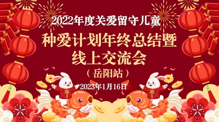 2023年1月16日,由种爱计划计划公益项目北京总部与岳阳站联合举行的2022年度关爱留守儿童种爱计划公益项目岳阳站年度总结暨线上交流会成功举行。北京总部种爱计划公益项目主任汪玲燕,岳阳市社科联党组书记、主席任欣欣,岳阳市妇联党组成员、副主席杨景,市婚姻家庭研究会会长、种爱计划岳阳站站长闫玉兰及相关县市区工作站、种爱计划学校负责人通过线上形式参加会议,共同回望2022年,展望部署2023年种爱计划工作。