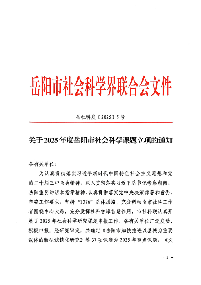附件1:2025年度岳阳市社会科学重点课题立项目录