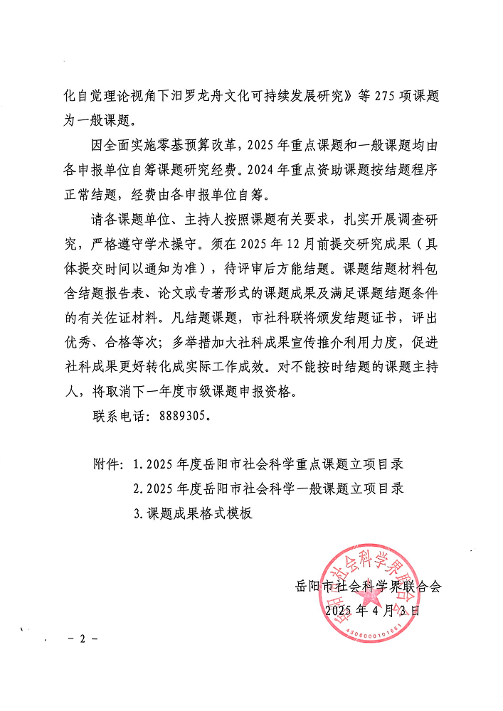 附件2:2025年度岳阳市社会科学一般课题立项目录
