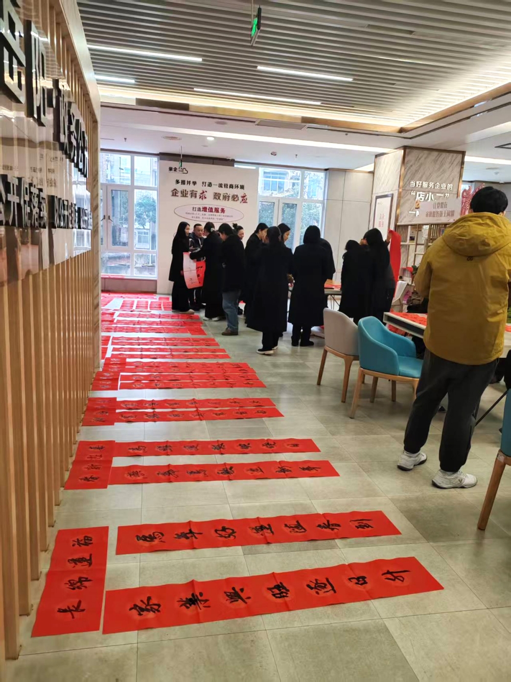 1月30日,室外寒风凛冽,市政务服务中心一楼大厅温暖如春、翰墨飘香,岳阳市数据局组织的“墨香迎新,廉洁过年”送春联活动正在火热进行。