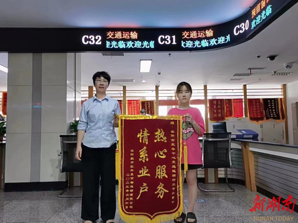 “热心服务,情系业户。”近日,岳阳市经开区萍聚货物运输有线公司送给岳阳市政务服务中心交通运输窗口锦旗。该公司到政务服务中心申办道路货物运输经营许可,签订告知承诺书后,免提交车辆证明材料和从业人员证明材料,极大缩短企业筹备时间,实现准入准营。