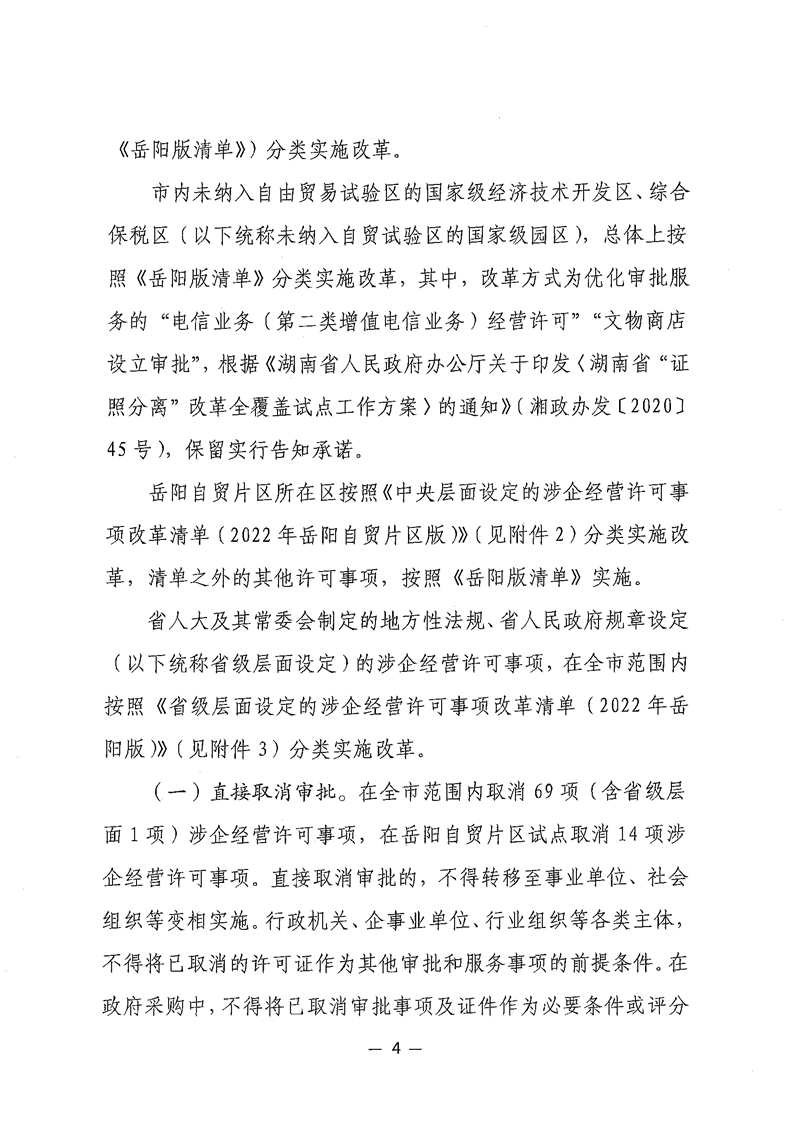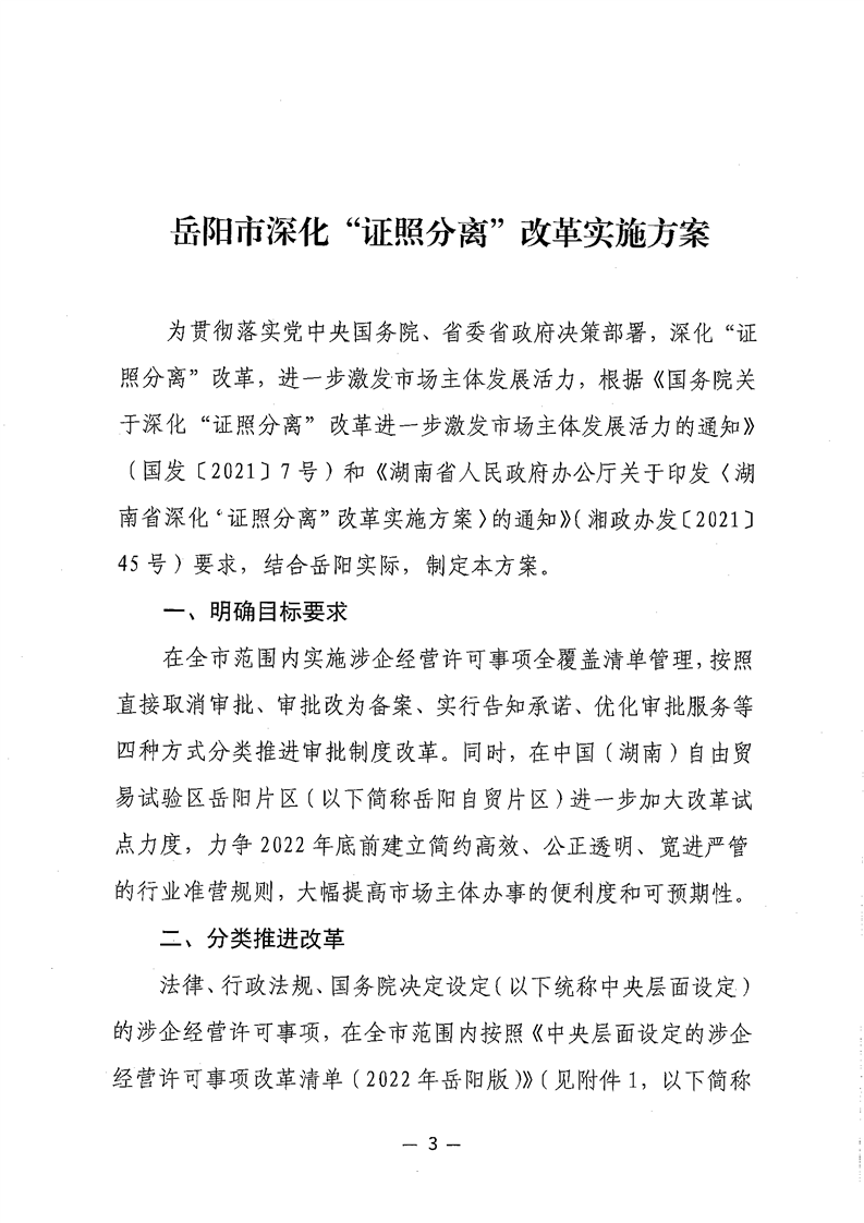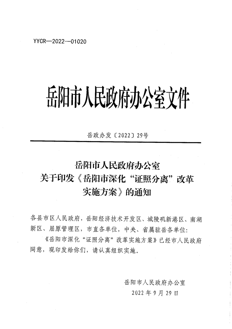 关于印发《岳阳市深化“证照分离”改革实施方案》的通知