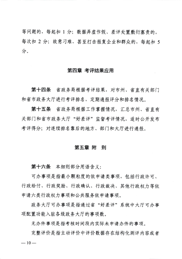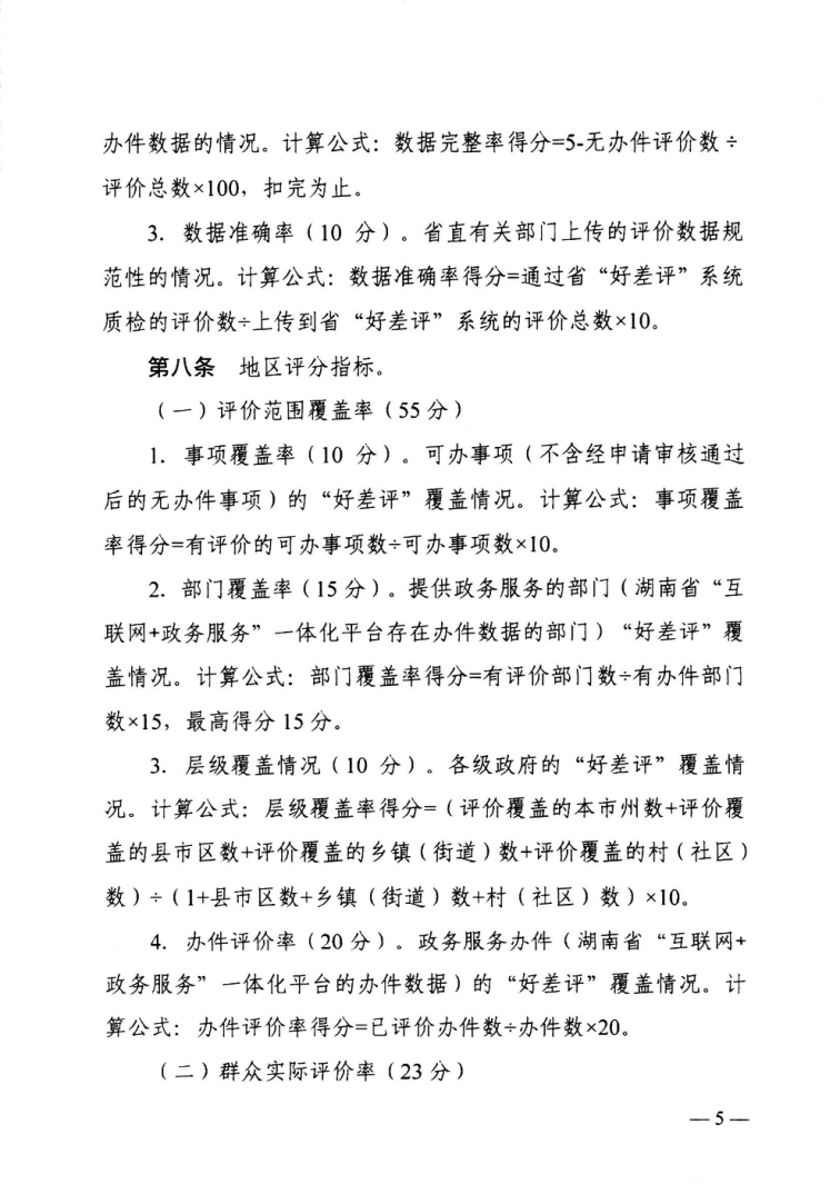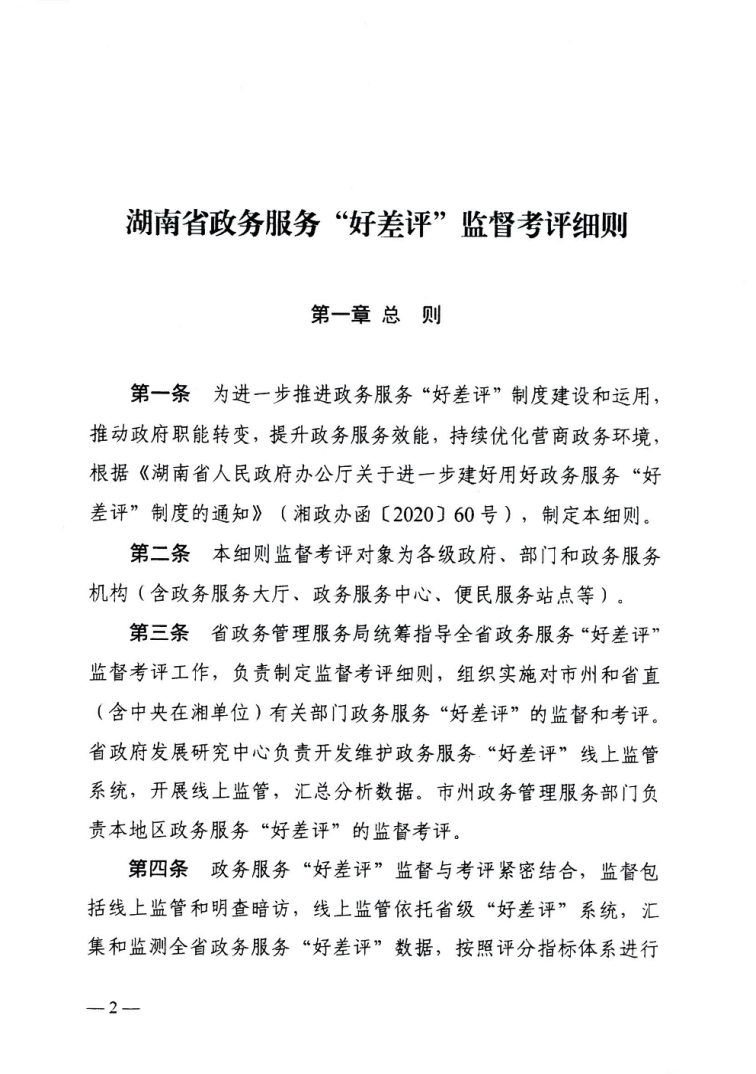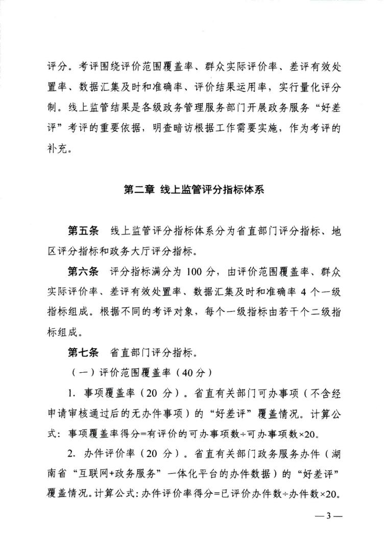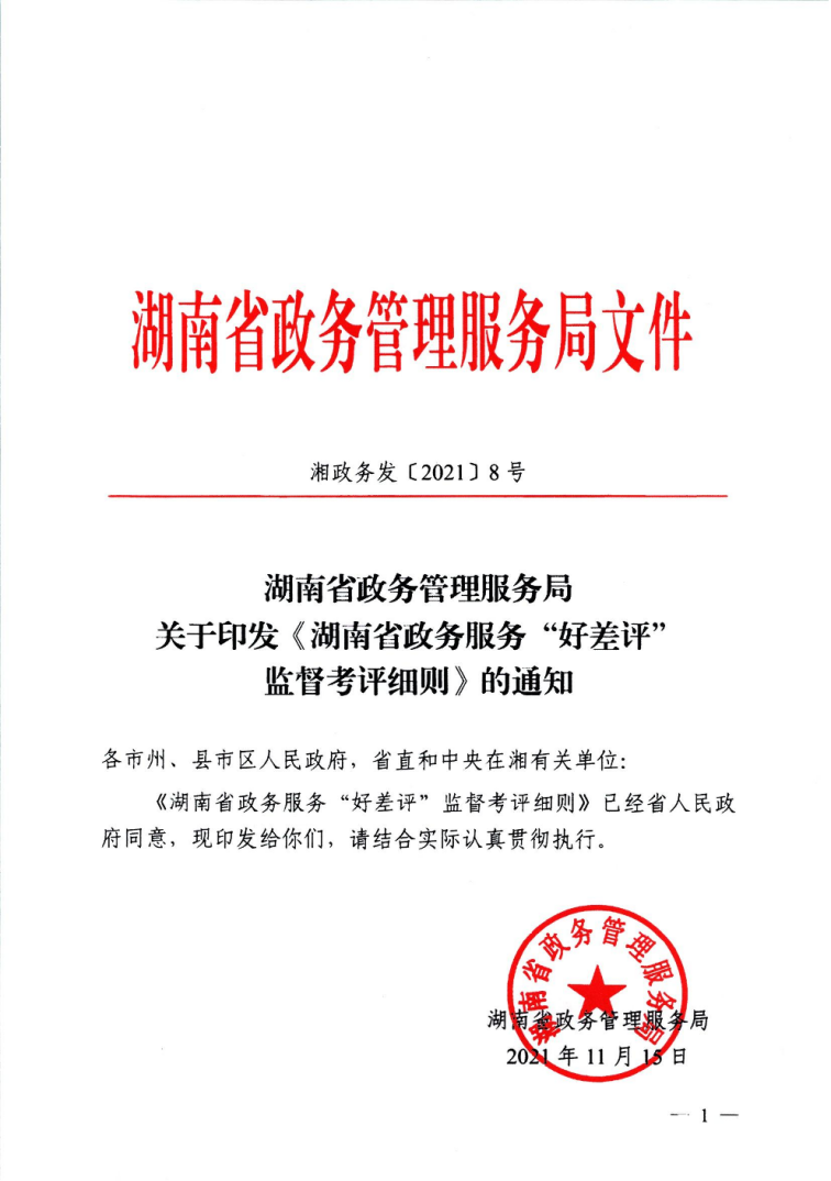 湖南省政务服务“好差评”监督考评细则