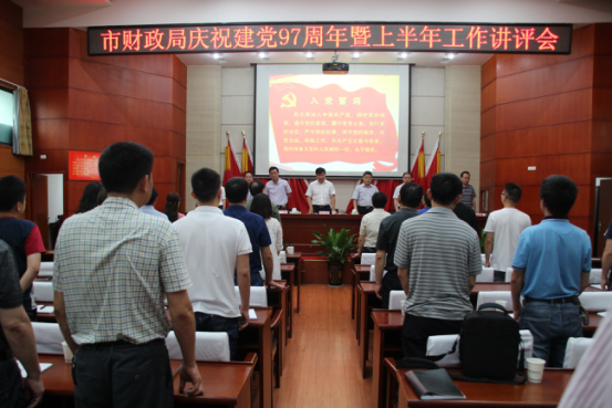 7月3日上午,市财政局召开庆祝建党97周年大会,局党组书记、局长邹三友讲专题党课,党组成员、副局长熊建伍主持会议,党组成员、总会计师、机关党委书记谢卿宣读了表彰优秀共产党员的通报、发展新党员批复和预备党员转正批复。全体在家局领导班子成员,局机关各科室、局属各单位全体在职干部,离退休支部党员代表,注协各支部书记及新党员参加会议。