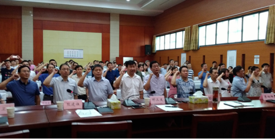 会议在庄严雄壮的国歌声中开幕,全体干部起立,奏唱了中华人民共和国国歌。