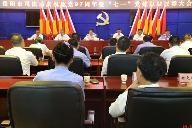岳阳日报全媒体讯(记者 李婷 通讯员 李泉)7月2日,市司法局召开庆祝建党97周年暨“七一”党建总结表彰大会。局党组书记、局长姜彬,全体党组成员,全体局机关干部,二级机构负责人,优秀支部代表等60余人参加会议。会议邀请了市纪委驻市委政法委纪检组组长李季平参加。