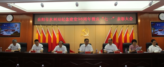 6月27日,岳阳市水利局召开庆祝建党98周年暨庆“七一”表彰大会。局党组书记、局长陈正文出席并为全局干部职工上了一堂生动的党课。会议由局党组副书记、副局长刘利文主持。