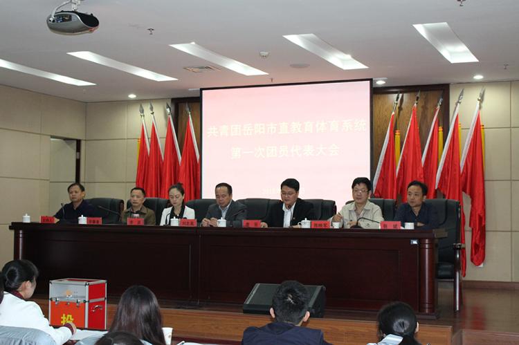 2016年9月30日上午8:30在岳阳市教育体育局一楼会议室召开共青团岳阳市直教育体育系统第一次团员代表大会,选举产生共青团岳阳市直教育体育系统第一届委员会委员并选举产生书记、副书记。岳阳市教育体育局党组成员、副局长刘志高同志,共青团岳阳市委副书记李乐同志,共青团岳阳市委组宣部部长李淇同志,岳阳市教育体育局人事科科长陈映军同志,岳阳市教育体育局机关党委副书记李像谦同志,岳阳市教育体育局纪监室主任张斌同志列席会议。大会由岳阳市教育体育局基教科科长何坡根同志主持。