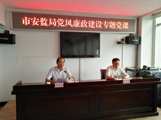 9月10日,市安监局举办党风廉政建设专题党课,市纪委常委、监委委员付汉家以“关于作风建设的几点思考”为题作专题辅导报告,市安监局党组书记、局长林军华主持并对党风廉政及安全生产工作进行安排部署,市纪委监委驻质监局纪检监察组组长陆亚超及市安监局全体机关干部职工参加学习。