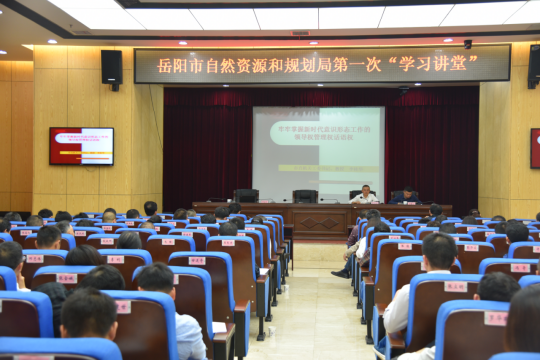 4月19日下午,市自然资源和规划局举行“学习讲堂”启动仪式暨第一次授课活动。活动由局党组副书记、副局长易拓新主持,局系统科级以上干部约120人参加。
