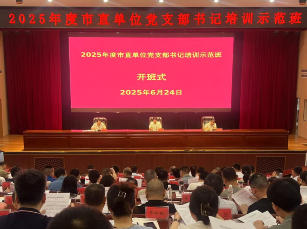 6月24日,2025年度市直单位党支部书记培训示范班在市委党校开班。市直及中央、省驻岳有关单位近300名党(总)支部书记参加培训。市直机关工委常务副书记李桂华以《深入贯彻八项规定精神 切实加强党的作风建设》为题进行专题辅导,工委副书记方欲林作开班动员和《如何当好一名机关党支部书记》授课。