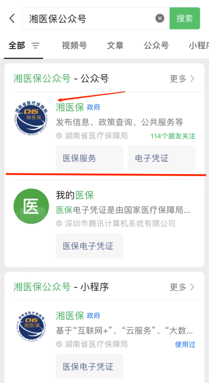 步骤1:点击链接或微信扫描二维码,或搜索微信公众号“湘医保