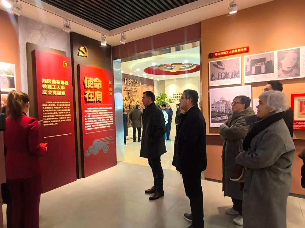 在粤汉铁路工人运动历史陈列馆,通过讲解员的生动解说,结合馆藏的宝贵文物、详尽的文献资料、形象的图片与视频,以及真实感强烈的场景复原,蒂亚戈·奥利维拉一行全面了解了粤汉铁路工人罢工的历史。代表团纷纷点赞,并表示陈列馆生动诠释了中国共产党的责任感、斗争精神和斗争智慧。