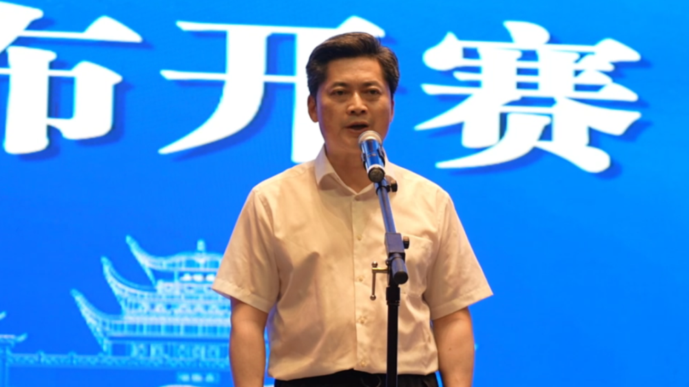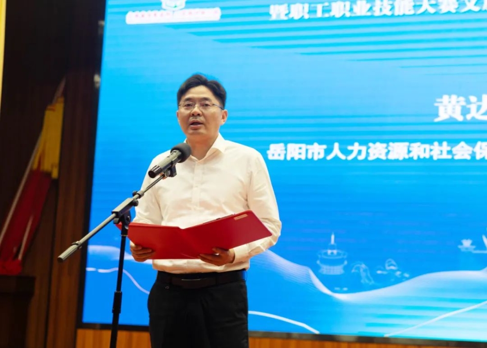 ▲4月18日,岳阳市人社局党组书记、局长黄达江出席文旅导游讲解员决赛开幕式并致辞。