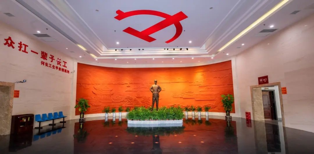 华容县烈士陵园内,松柏苍翠,庄严肃穆,何长工同志纪念馆巍然矗立。纪念馆陈列展览由序厅和4个陈列室组成,通过创作画、场景还原、幻影成像等现代科技手段和艺术创作形式,全方位、多维度地展现了何长工同志在建党、建军和建国三个方面的丰功伟绩,生动再现了他光辉的奋斗历程。