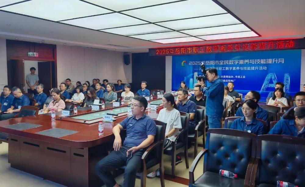 7月18日下午,2025年岳阳市职工数字素养与技能提升活动在华能岳阳电厂举行。本次活动是2025年岳阳市全民数字素养与技能提升月的重点活动之一,由市委网信办、市总工会主办,华能岳阳电厂承办。市委网信办副主任邹文锋出席活动并讲话,市总工会副主席、女工委主任朱飞鹰主持活动,提升月活动成员单位,以及部分中央、省驻岳企业职工代表参加了活动。