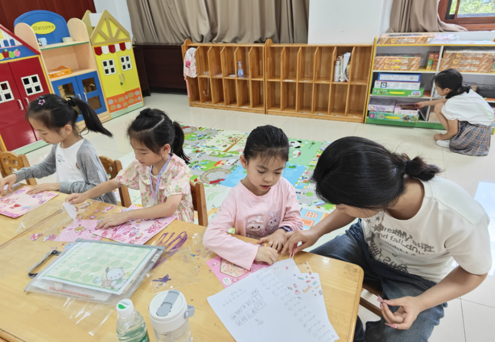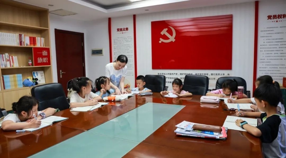 岳阳日报社暑期职工子女托管班里,孩子们在老师的指导下认真完成作业,并参与趣味游戏活动。该托管班合理规划学习与娱乐时间,既保障孩子们的学习进度,又丰富假期生活,有效缓解了在职职工子女暑期“看护难”问题,让家长们安心工作。