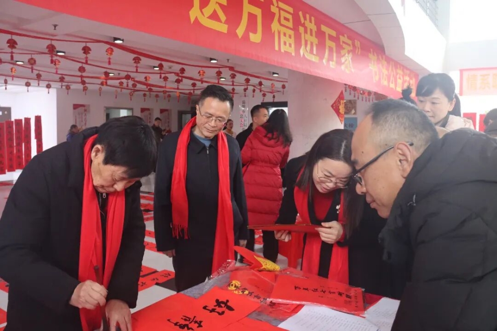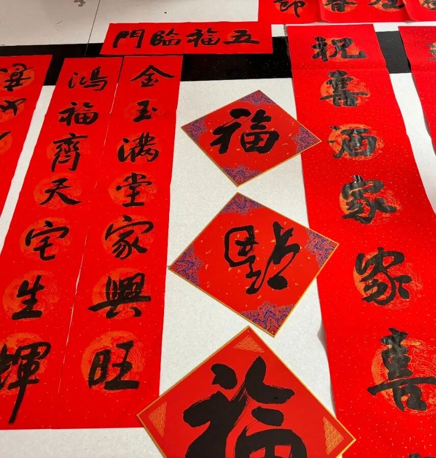 活动现场,笔墨飘香,暖意融融。书法家们挥毫泼墨,将对新年的美好祝愿融入一张张饱含神韵的“福”字、一副副意蕴吉祥的春联中。书写内容既有承载千年文脉的传统吉祥联句,也有呼应时代脉搏、歌颂劳动创造的励志佳话,更不乏抒发家国情怀、礼赞山河锦绣的昂扬诗章,字里行间寄托着对大家对美好生活的向往与新年的祈愿。