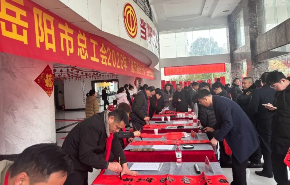 近年来,岳阳市各级工会持续深入开展“送万福、进万家”书法公益活动,深入企业车间、工地园区、街道社区,为职工群众、产业工人、新就业形态劳动者等现场写春联、送祝福。活动不仅丰富了职工精神文化生活,营造了欢乐祥和的节日氛围,也让广大劳动者真切感受到了工会“娘家人”的温暖与关怀。
