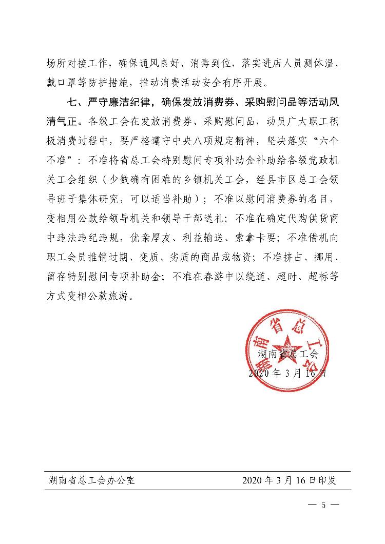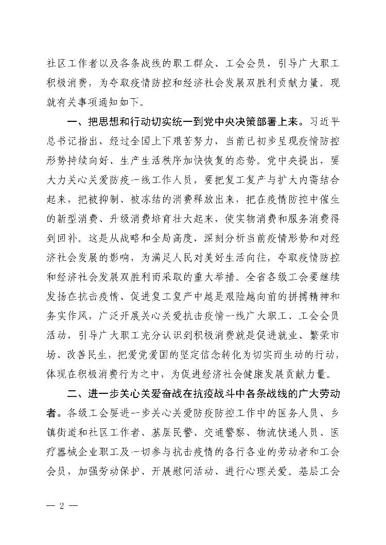 湖南省总工会关于广泛开展关心关爱抗击疫情一线广大职工工会会员活动 引导积极消费 促进就业繁荣市场的通知