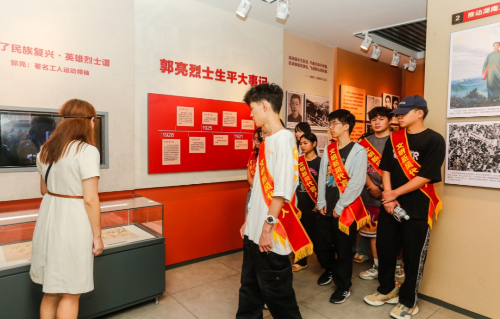 受助学子参观了粤汉铁路(岳州)工人运动历史陈列,深入了解中国共产党领导下的工人运动史,深刻感悟革命先辈大无畏的奋斗精神,并签订了移风易俗承诺书,承诺拒绝大操大办升学宴、谢师宴,立志成为文明风尚的传播者。