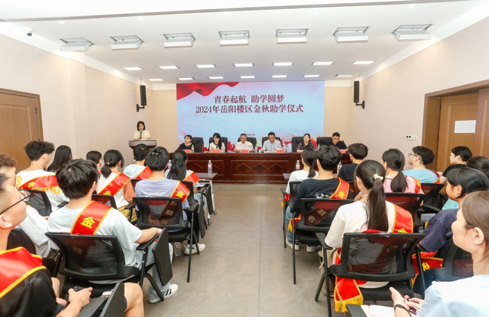 仪式上,区困难职工帮扶中心主任卢超介绍了2024年岳阳楼区“金秋助学”活动的开展情况,学生代表阮佳美、邓凯丰进行了励志发言,随后,参会领导为受助学子发放了纪念图书《任弼时的故事》《永远的丰碑》和慰问金。