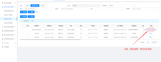 4、医疗互助补助金申请步骤流程:新增创建个人补助申请→输入身份证和入、出院时间→点击查询住院信息→住院结算单、银行账号信息通过图片上传→点击保存(申请单处于保存状态时,申请人还可以修改,提交后如需修改必须代办处驳回再修改)→申请页面点击确认后,在表单列表中需点击“提交流程”按钮,提交代办处审核后→一定要及时关注审批进度,有误的市总会直接驳回到各自的医互系统。