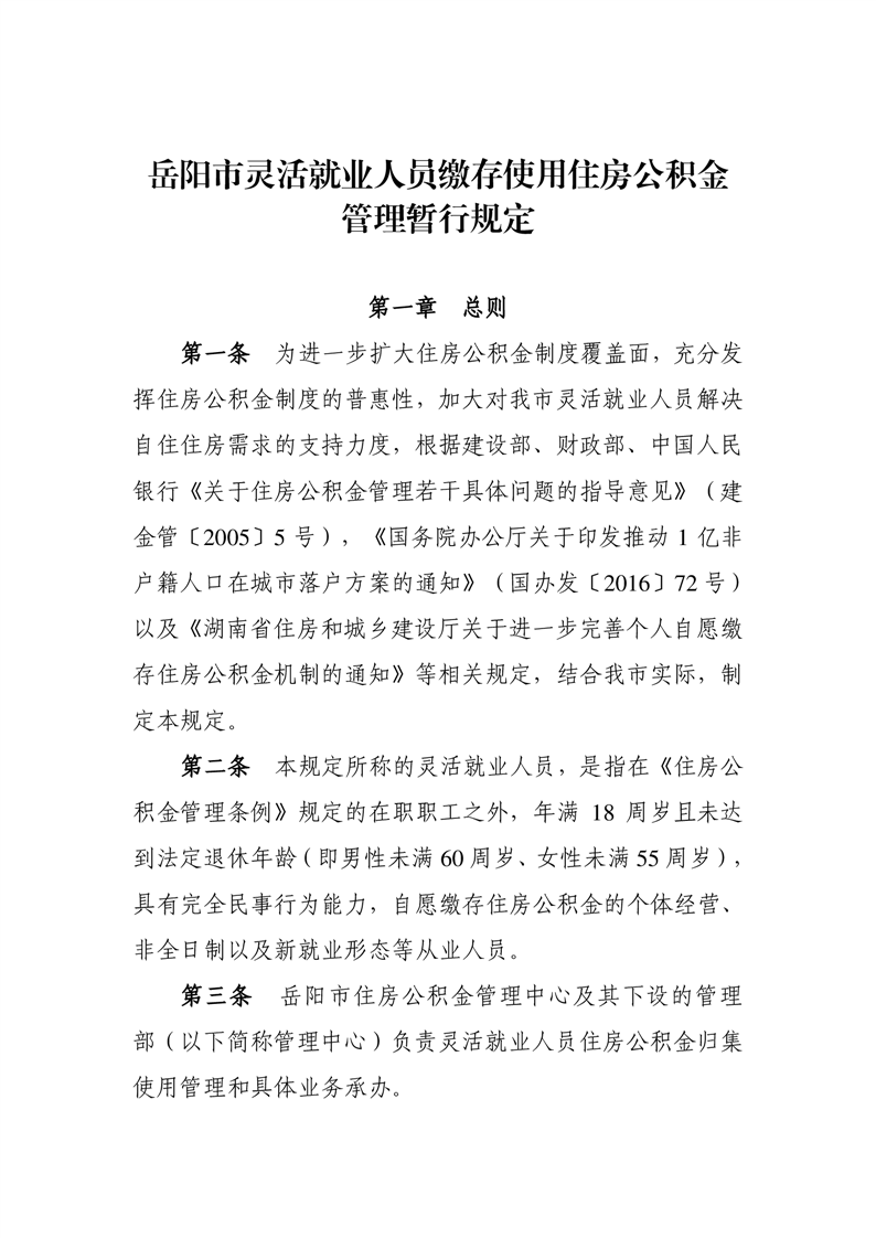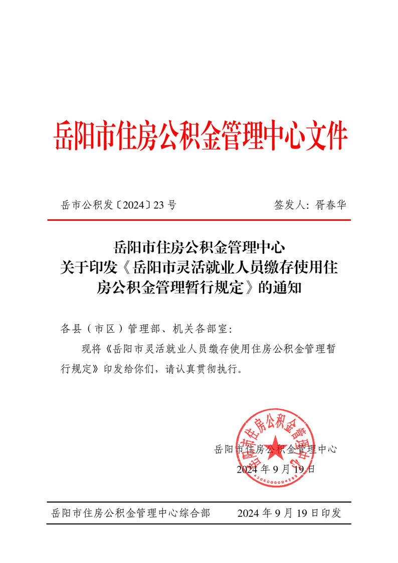 2024.23关于印发《岳阳市灵活就业人员缴存使用住房公积金管理暂行规定》的通知