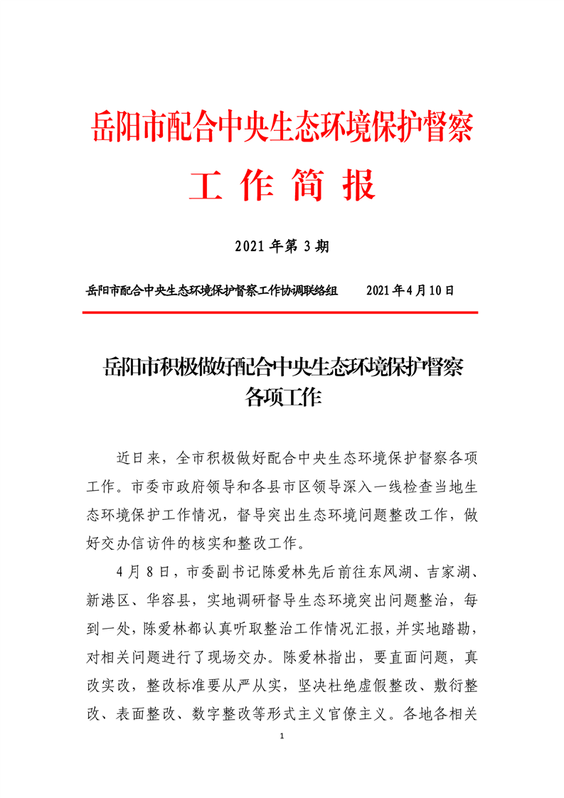 岳阳市配合中央生态环境保护督察工作简报第3期