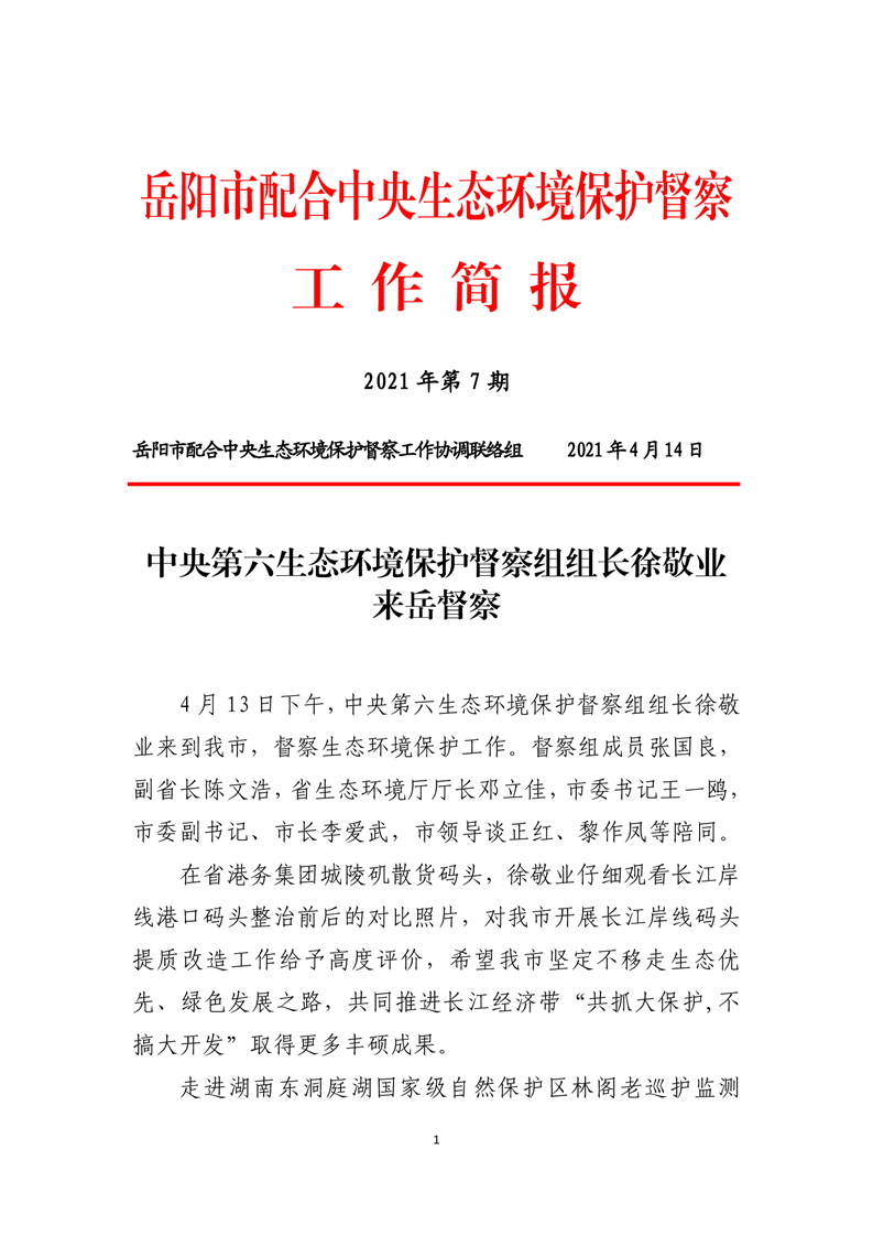 岳阳市配合中央生态环境保护督察工作简报第7期