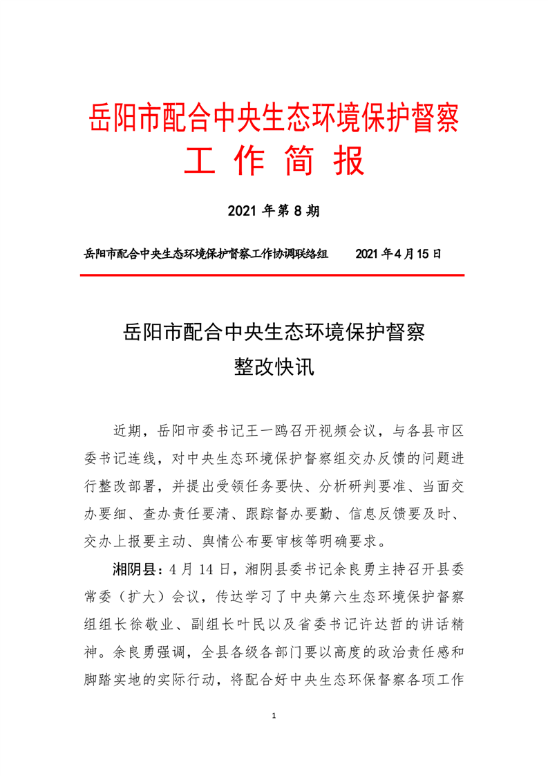 岳阳市配合中央生态环境保护督察工作简报第8期
