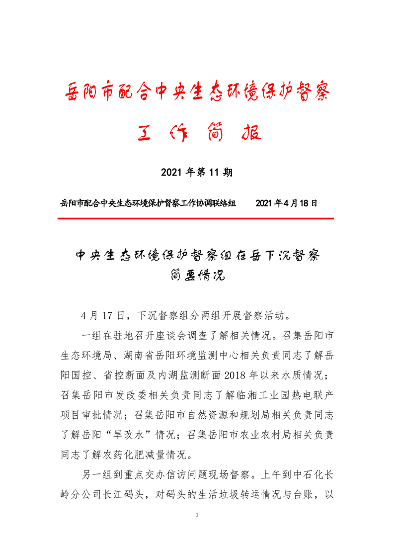 岳阳市配合中央生态环境保护督察工作简报第11期