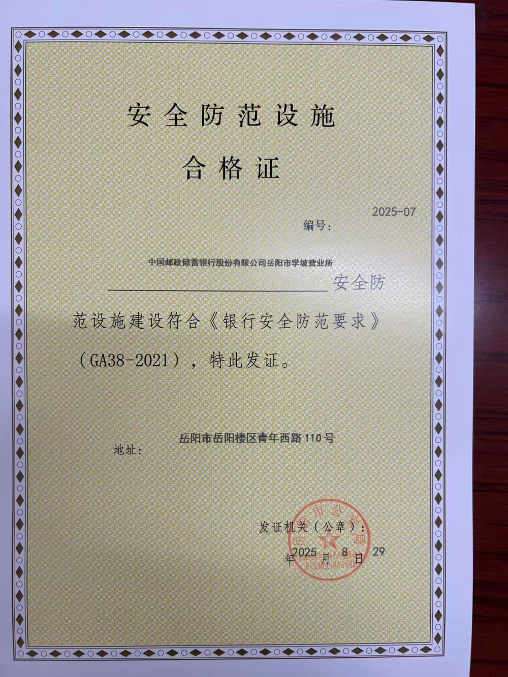安全防范设施合格证[2025]07号